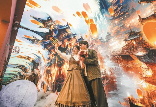 在甜爱婚姻登记中心,工作人员为新人设置了诸多元宵节场景和游戏 本报记者 陈梦泽 摄